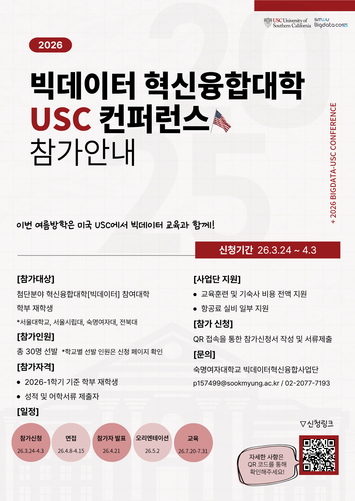 ✔️  프로그램명 : 2026 빅데이터혁신융합대학-USC 컨퍼런스