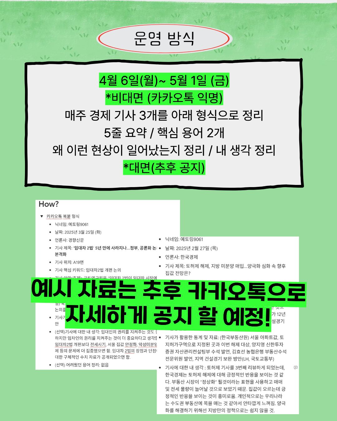 매주(평일 중) 경제 기사 3개를 읽고 아래 형식으로 정리