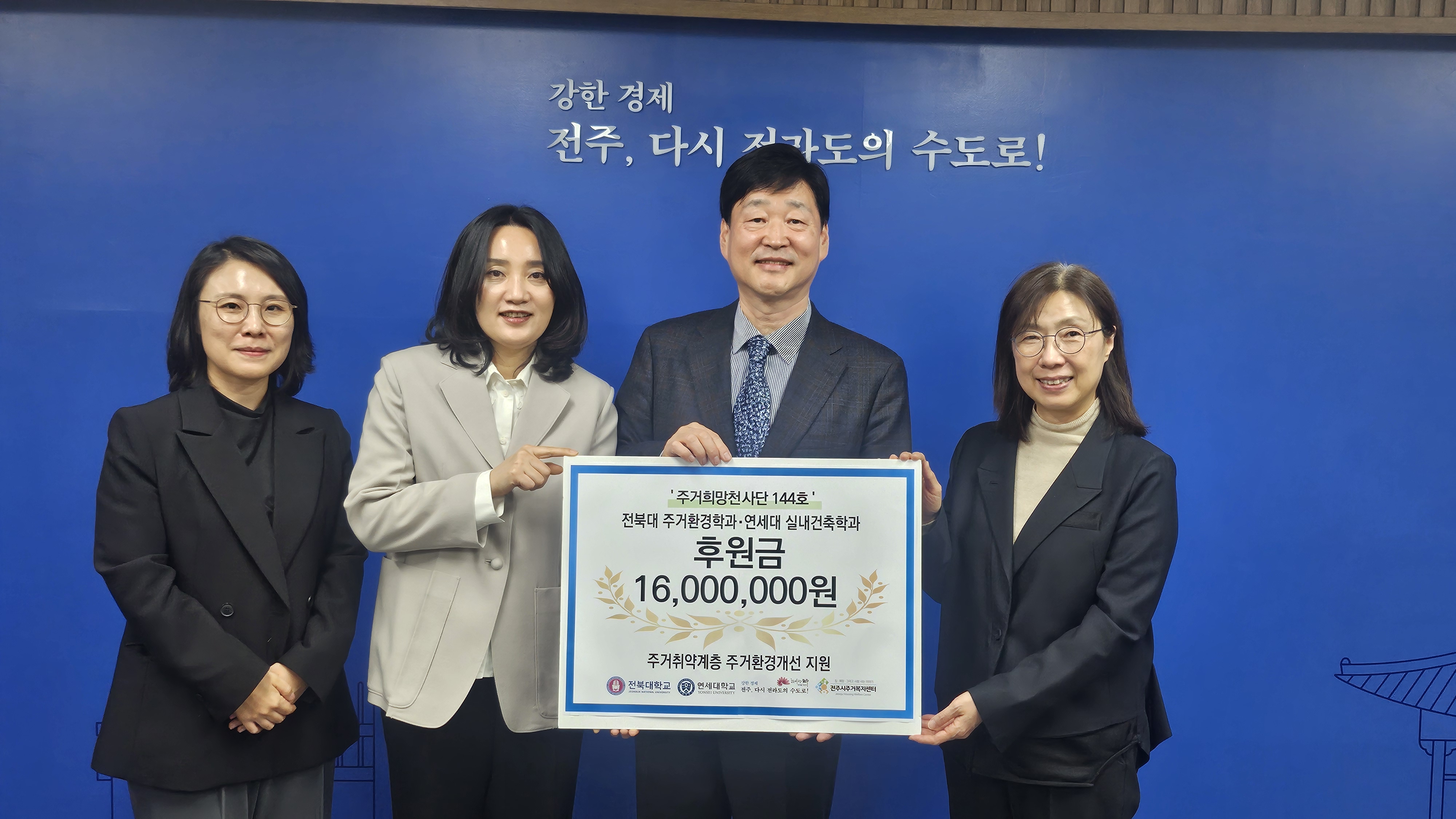 이번 후원은 전북대 주거환경학과가 1,000만 원, 연세대 실내건축학과가 600만 원을 함께 조성해 마련됐다. 전북대는 지난해에 이어 두 번째로 참여해 지속적인 지역사회 기여를 이어가고 있다.