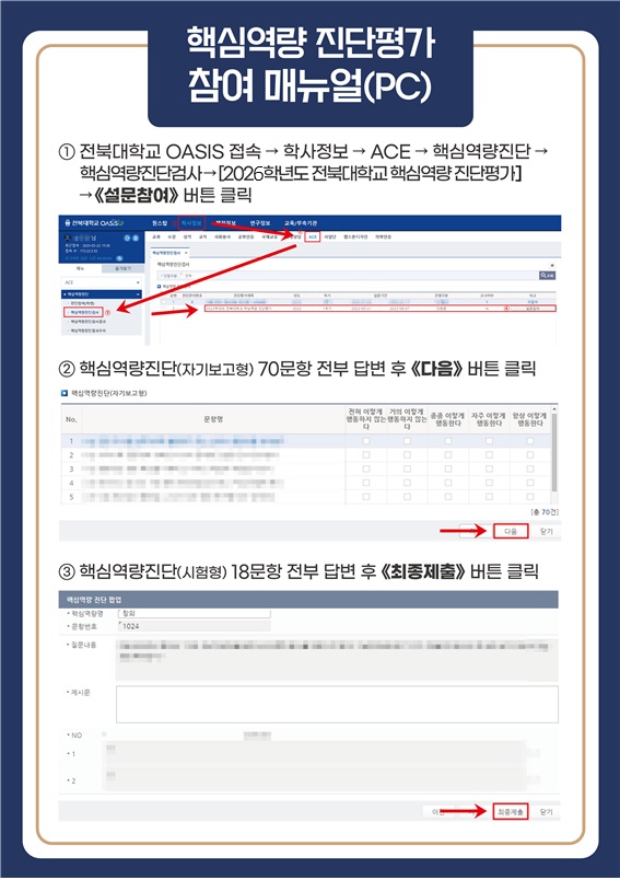 - 오아시스 접속 학사정보 ACE 핵심역량진단(검사) → 【설문참여