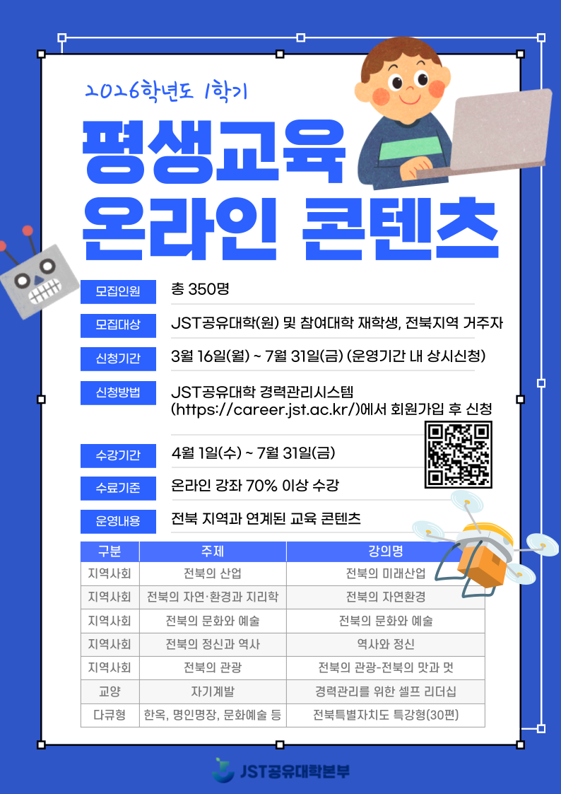 ※ 전북지역 거주자의 경우, JST공유대학 홈페이지 회원가입 후 수강 가능