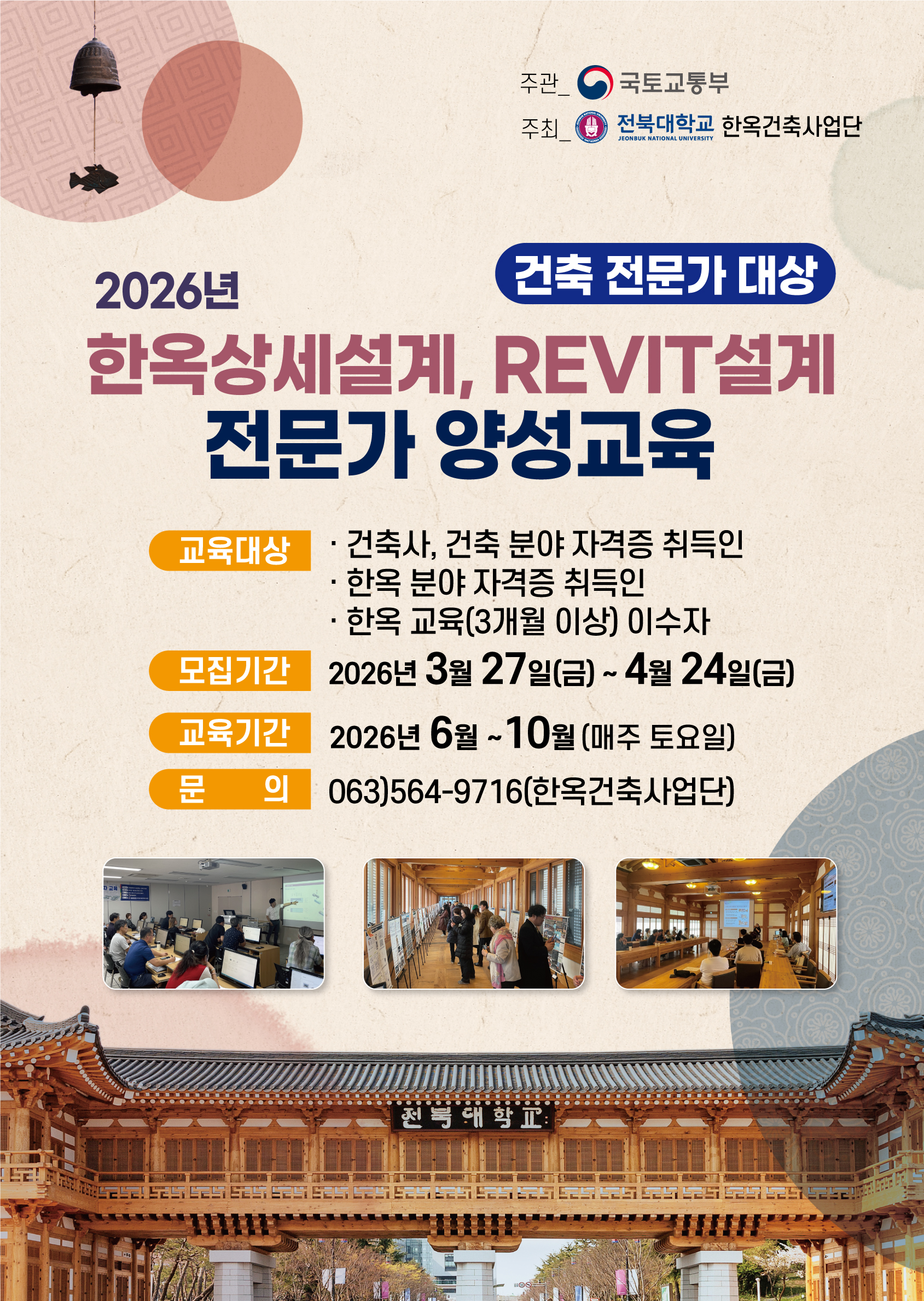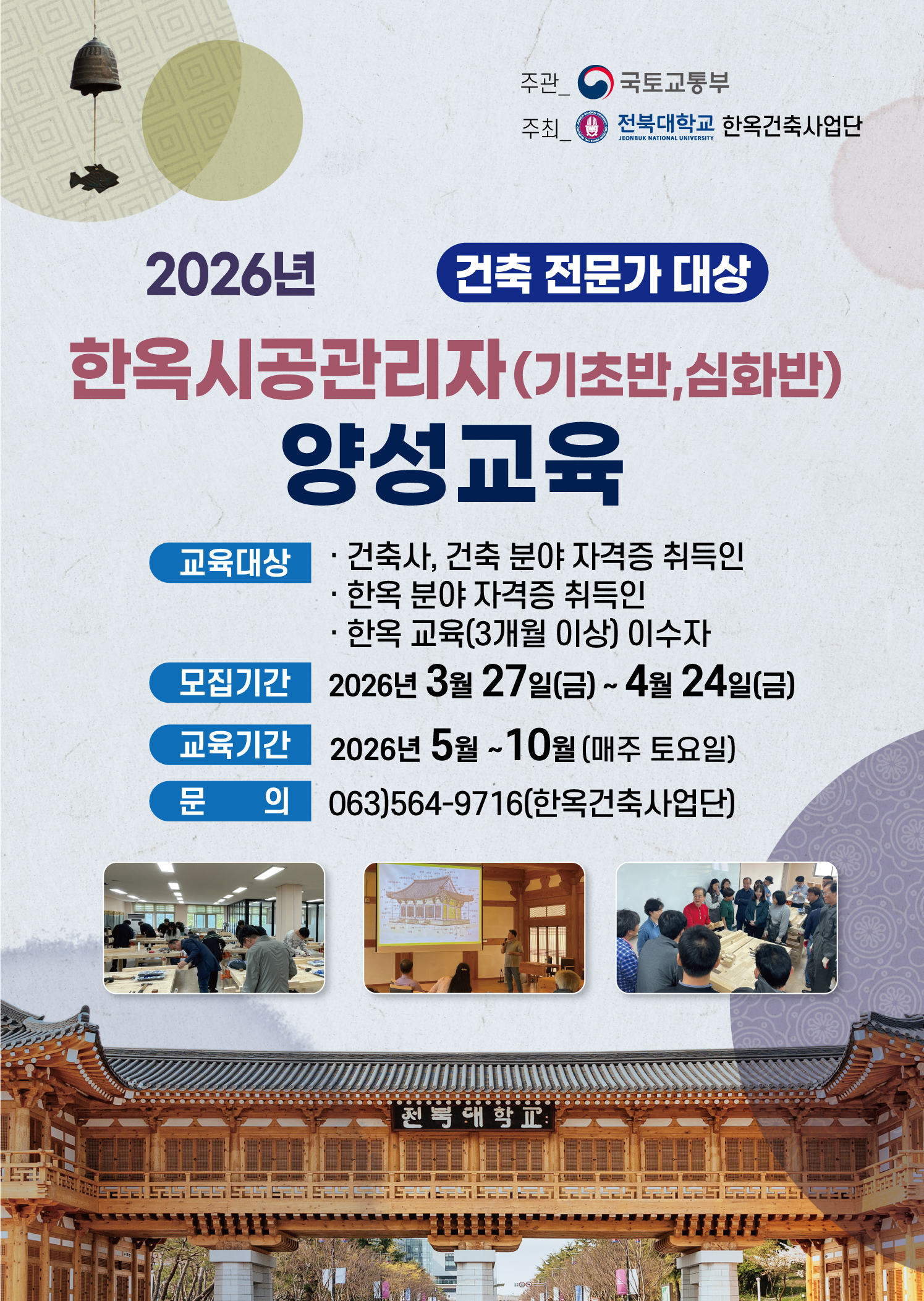 [국토교통부 주최] 26년 한옥 전문인력 양성과정 교육생 모집