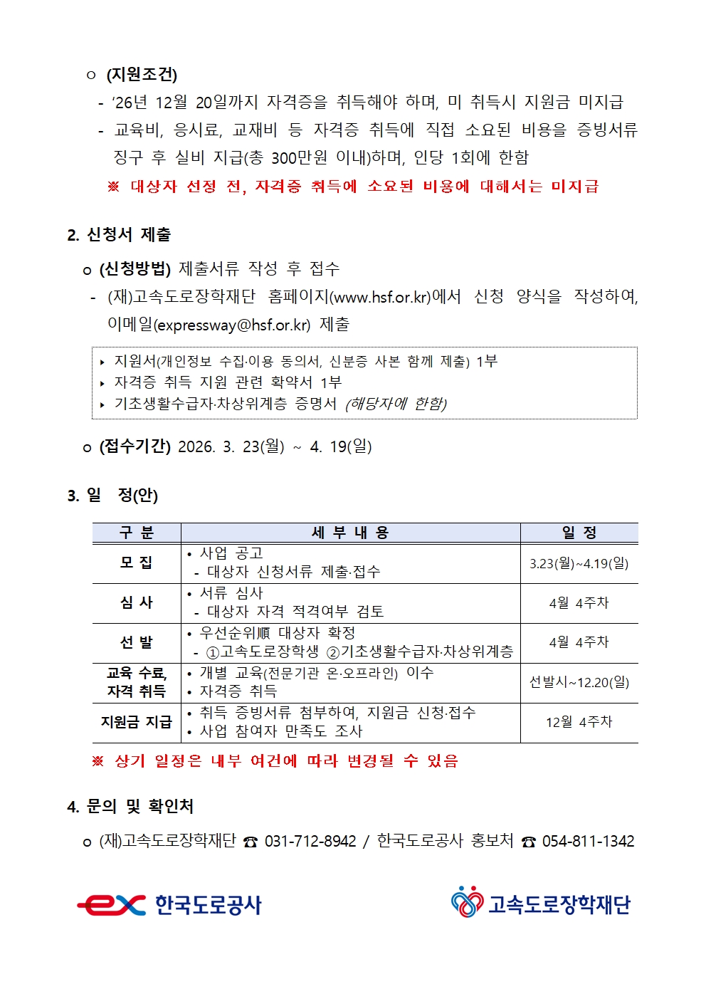 고속도로장학재단에서 2026년 고속도로장학재단 미래기술 분야 자격취득 지원대상자를 모집합니다. 관심있는 학생들의 참여 바랍니다.