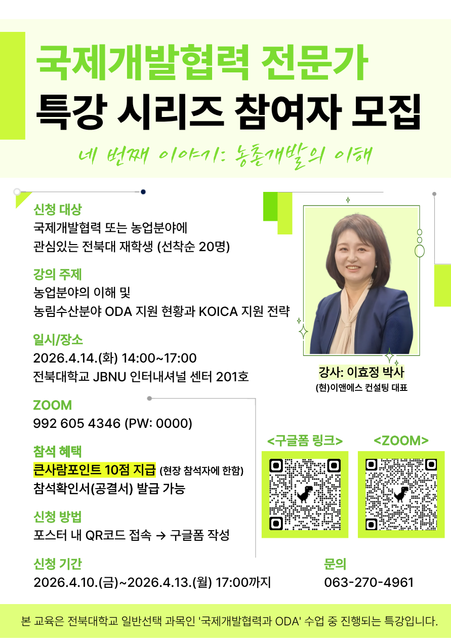 문의: 전북국제개발협력센터 063-270-4961 / jbidcc@jbnu.ac.kr