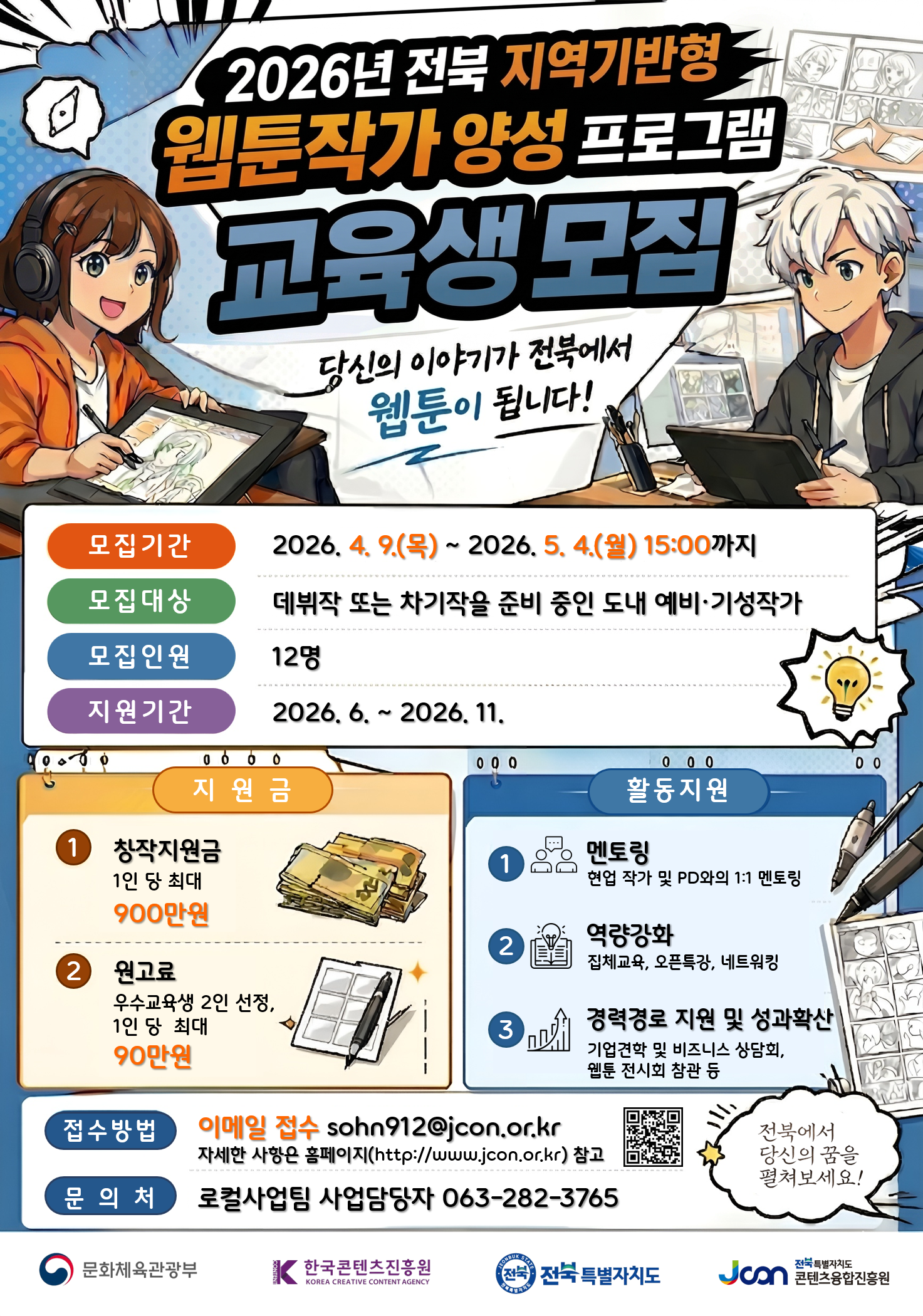 [2026년 전북 웹툰작가 양성 프로그램 교육생 모집 안내]
