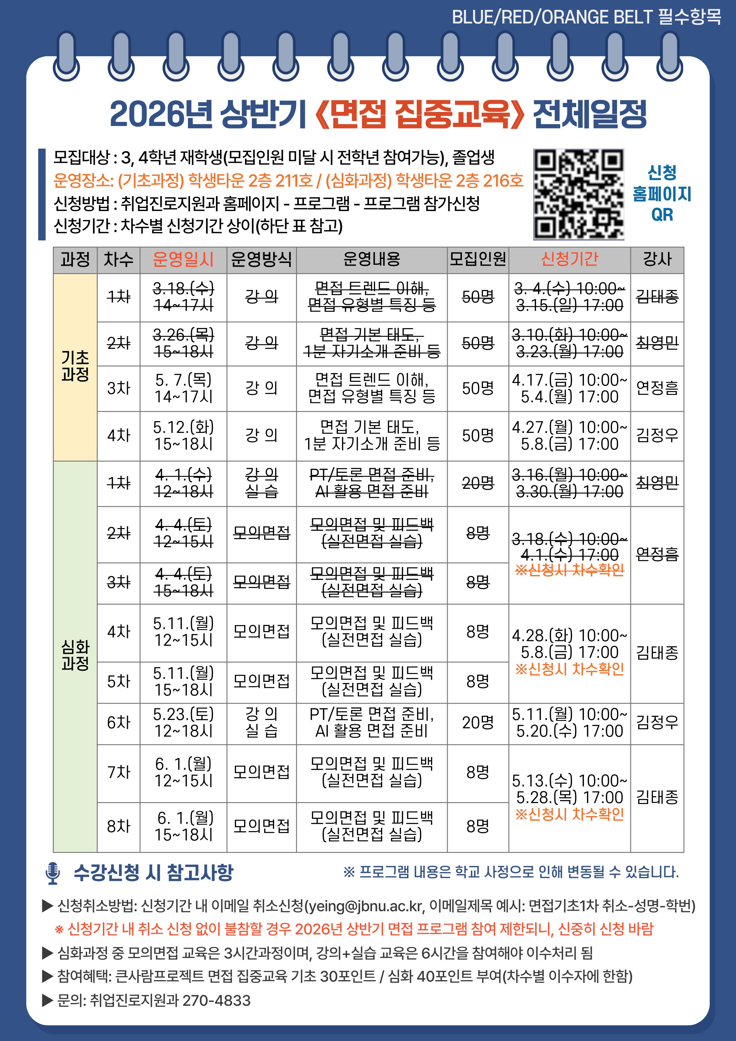 [BLUE/RED/ORANGE BELT 필수항목] 2026년 상반기 면접 집중교육 일정 및 신청 안내