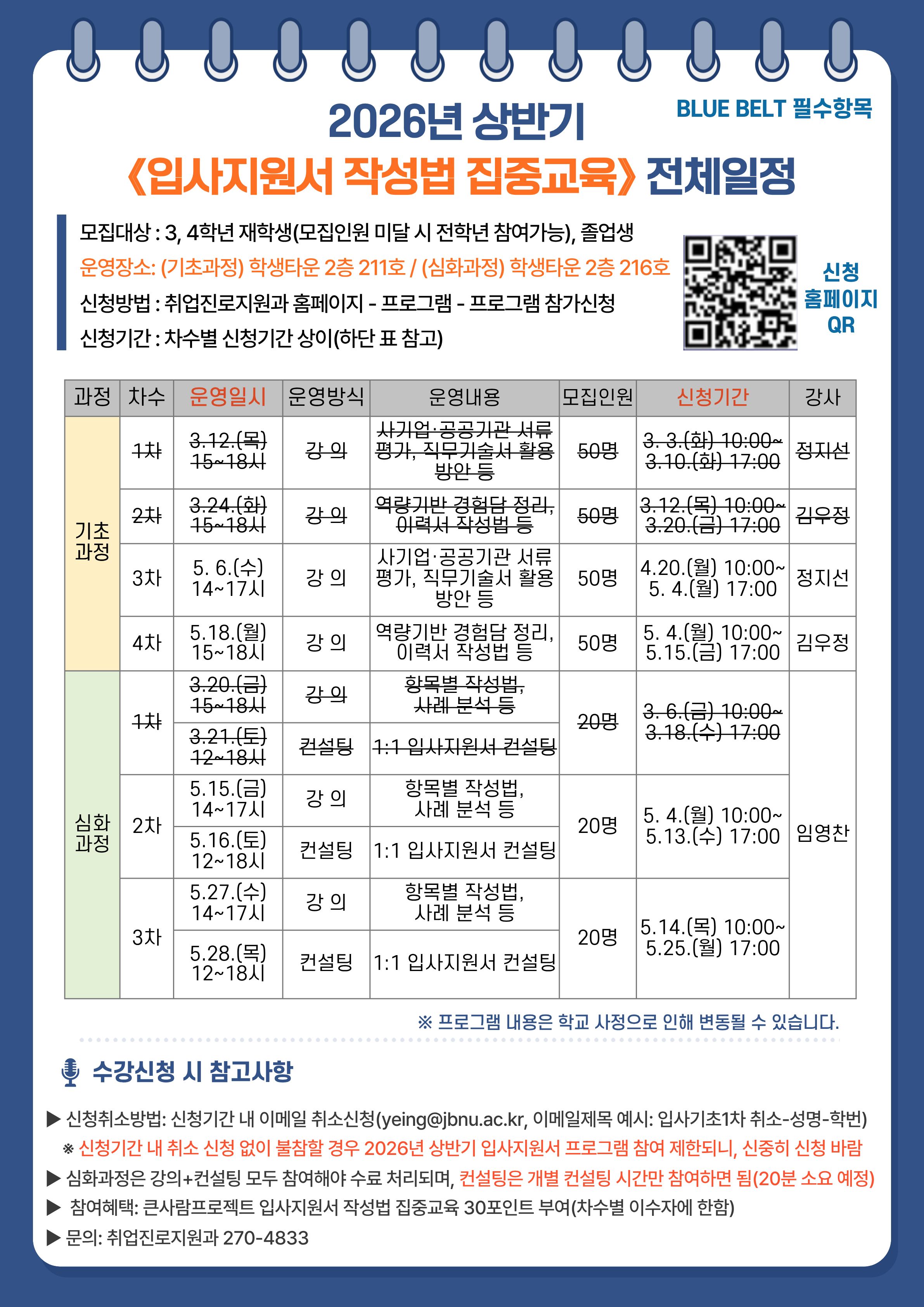 [BLUE BELT 필수항목] 2026년 상반기 입사지원서 작성법 집중교육 일정 및 신청 안내