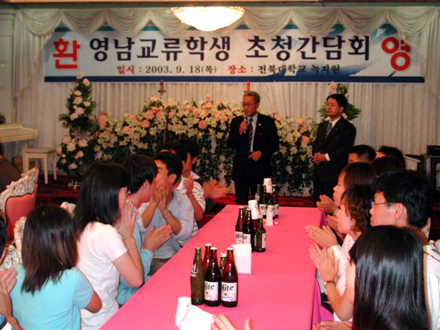 이날 간담회에서 두재균 총장은 "우리 대학을 찾은 영남교류학생들을 진심으로 환영합니다. 우리 대학에서 많은 것을 배우고 돌아가 앞으로 영호남 교류학생 제도가 활발히 이루어지도록 널리 알려주시기 바랍니다."라며 우리 대학에서 생활하는데 불편함이 없도록 최대한의 배려를 다짐하였다.