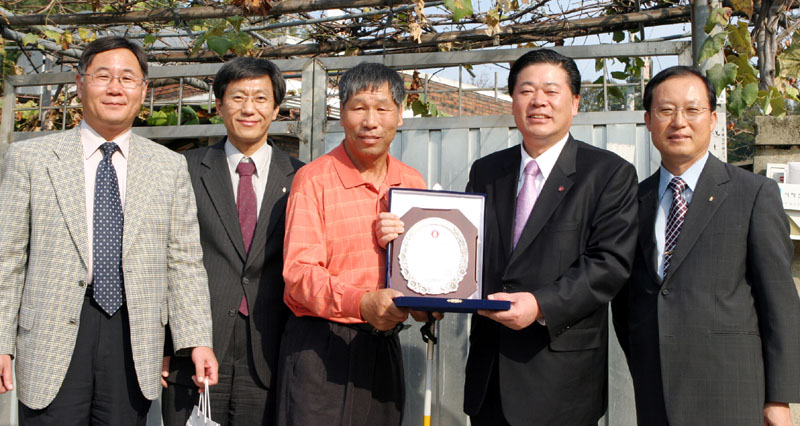 고인의 유지를 받드는 소중한 노력에 감사의 뜻을 표하기 위해 우리 대학은 지난 달 27일 두재균 총장, 최낙원 학생처장, 임채호 기획처장 및 발전지원재단 관계자들이 함칠봉 씨를 방문하여 감사패와 소정의 격려금을 전달했다.