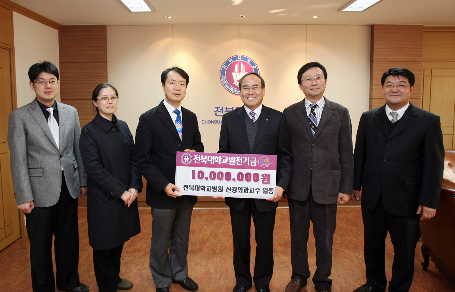 우리 의학전문대학원 신경외과학교실 교수들과 전임의들이 대학 발전기금으로 1천만원을 기탁했다.