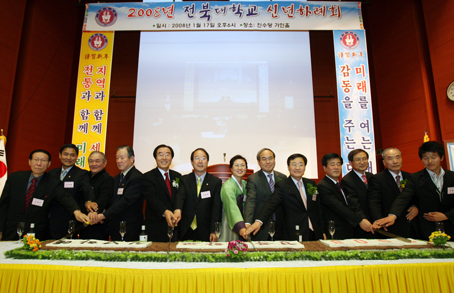우리 대학교와 총동창회가 주최한 ‘2008년 전북대학교 신년하례회’ 참석자들은 대학과 지역이 협력하여 활력 넘치는 전라북도를 만들자고 다짐했다.