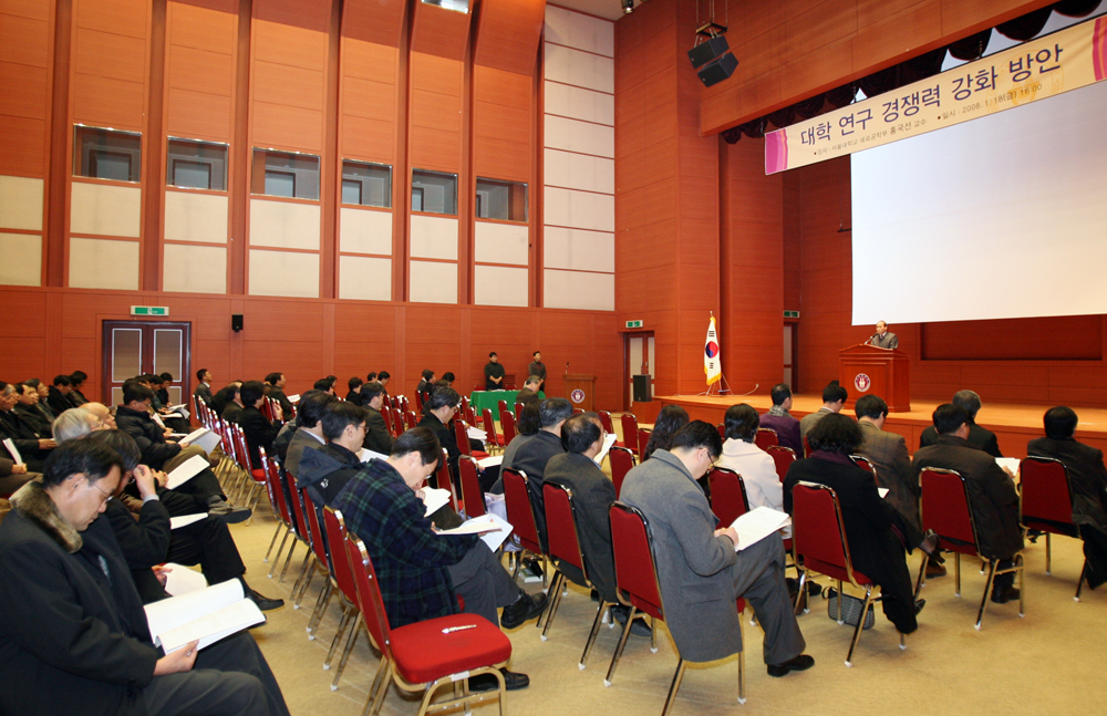 이날 워크숍에서는 우리 대학 2008학년도 처·국·실·단의 현안업무에 대한 설명 및 의견 수렴에 앞서 서울대 홍국선 교수가 ‘대학 연구 경쟁력 강화 방안’이라는 주제로 특강을 실시했다.