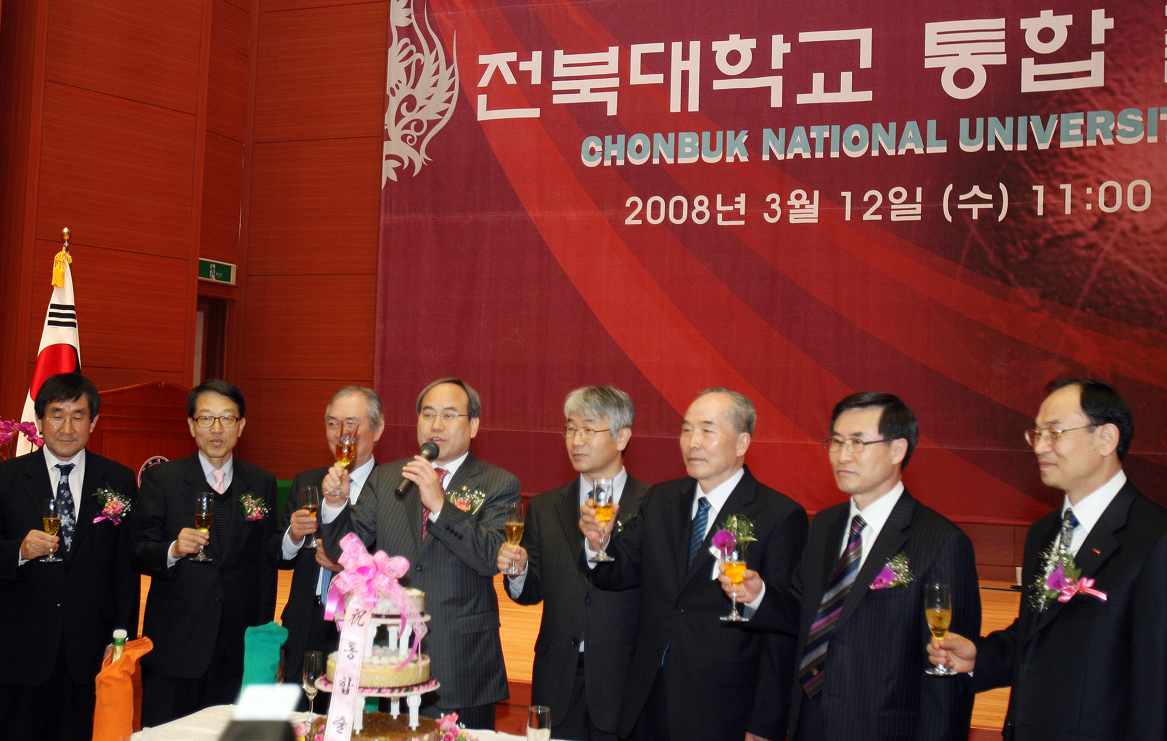 우리 대학은 이날 오전 11시 법학전문대학원 본관 가인홀에서 서거석 총장과 조좌형 환경생명자원대학장(전 익산대학장)을 비롯, 김수곤·장명수 전 총장, 이광철 총동창회장, 한명규 전라북도 정무부지사, 곽창신 교육과학기술부 평생직업교육지원국장, 지역대학 총·학장, 대학 구성원 등 3백여 명이 참석한 가운데 통합대학 출범식을 가졌다.