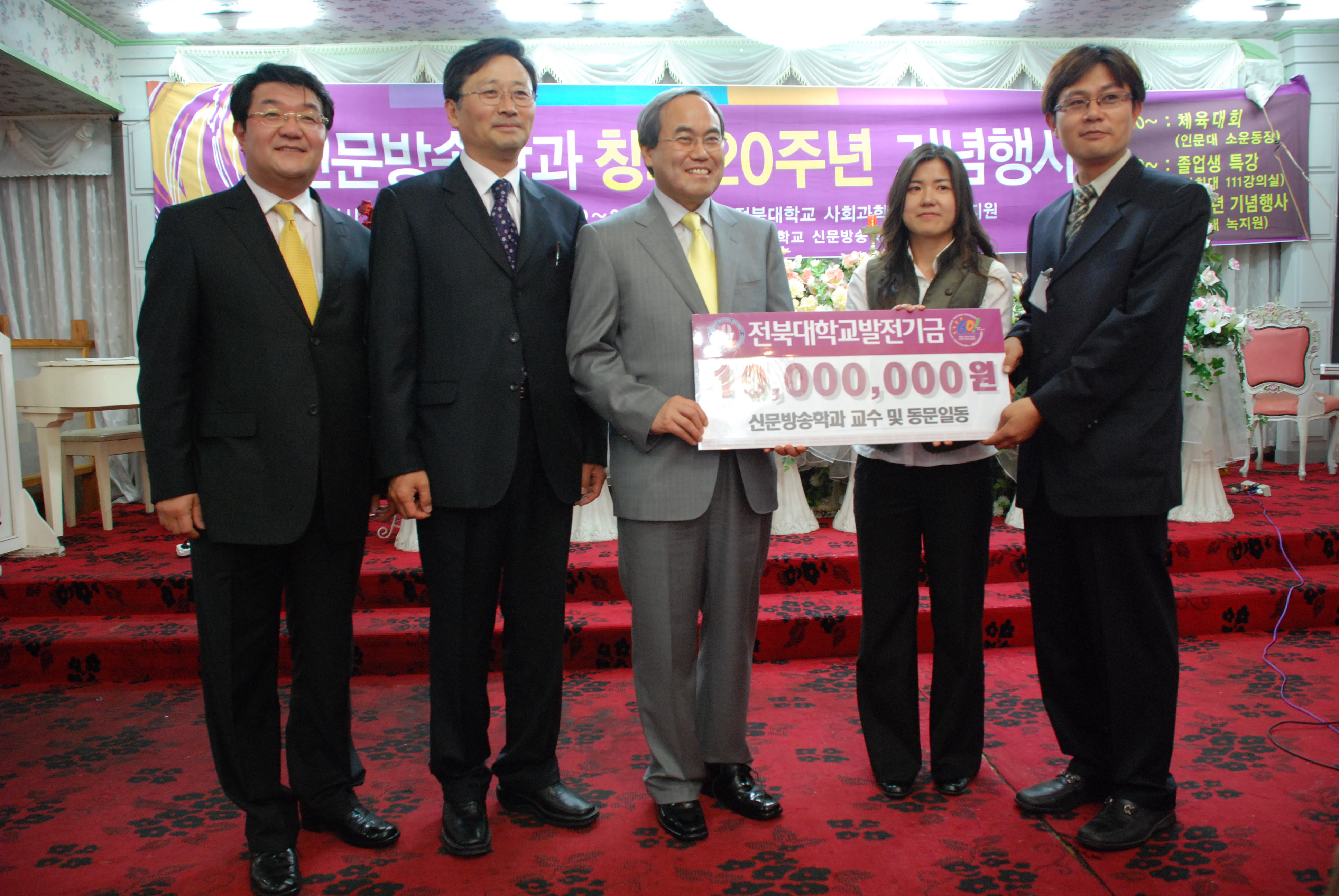 특히 이날 행사에서는 신문방송학과 졸업생과 학과 교수들은 1000만원을 대학발전기금으로 기탁, 창과 20주년의 의미를 더욱 빛냈으며 재학생 10명에게는 장학금이 수여됐다.