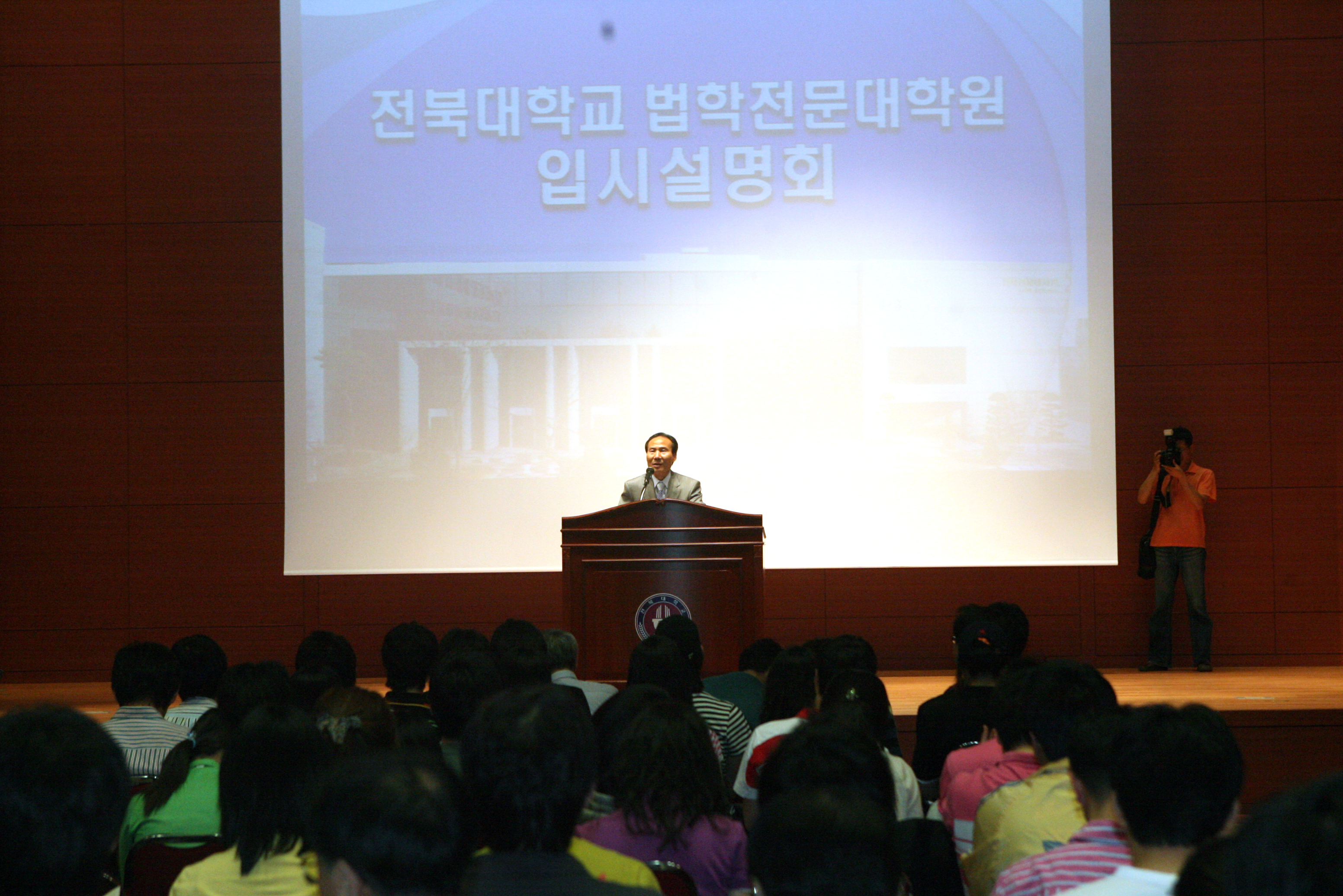 우리 대학 법대 백종인 학장의 인사말로 문을 연 이날 설명회는 법학과 배정생 학과장의 사회로 전북대 로스쿨 입학 전형에 대한 상세한 설명이 이어졌다.