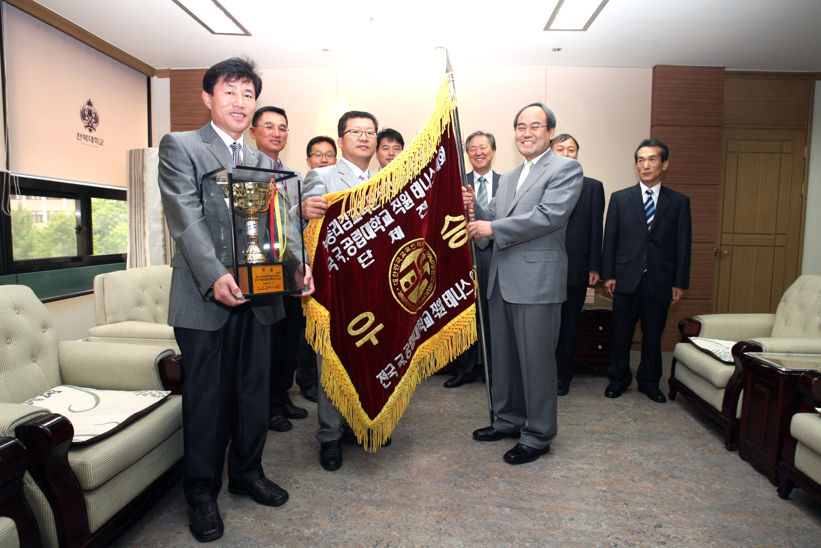 이에 전북대 서거석 총장은 5월 13일 오전 우수한 성적을 거둔 이들에 대한 우승기 및 트로피 전수식을 열어 우수한 성적에 대해 치하했다.