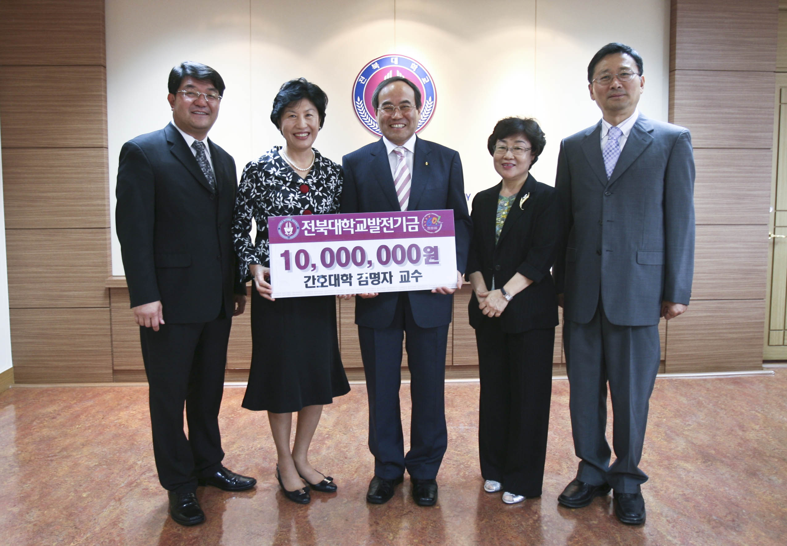 김 교수는 “오랜 세월을 함께한 우리 전북대가 나날이 발전하는 모습을 보고 대학 발전에 더욱 힘을 보태고 싶었다”라며 “작은 마음이지만 우리 대학이 세계 100대 대학을 향해 전진하는 데 밑거름이 될 수 있기를 바란다”라고 말했다.