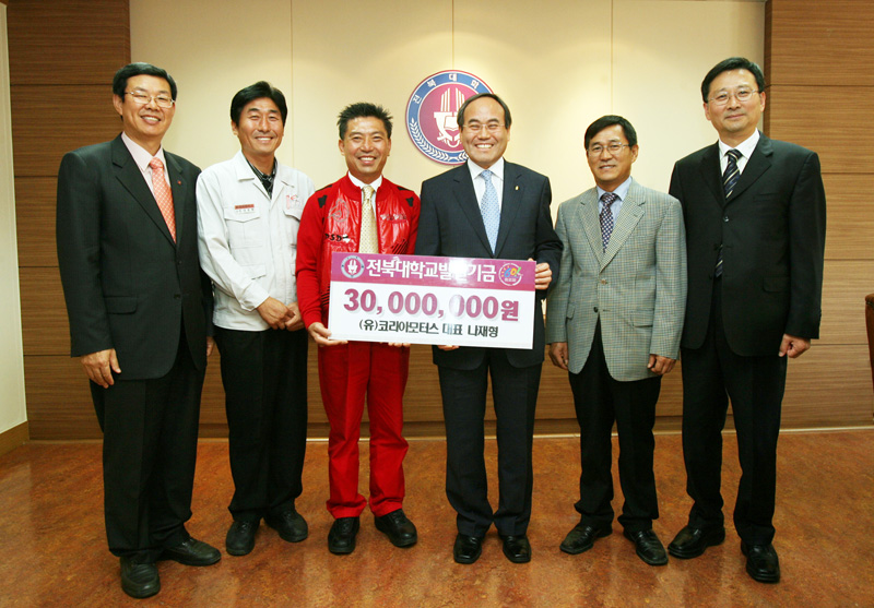 도내 최대 자동차 정비업체인 코리아 모터스의 나재형 대표가 10월 9일 오후 2시 서거석 총장을 찾아 대학발전기금 3천 만원을 쾌척했다.