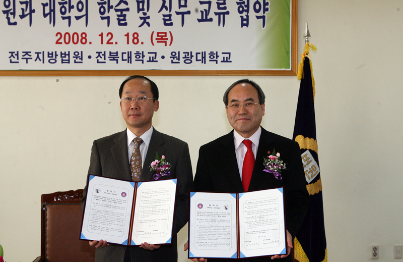 이번 협약은 우리 대학과 법원, 그리고 원광대가 다양한 프로그램을 통한 활발한 교류로 지역사회의 법률문화 발전을 도모하기 위한 것.