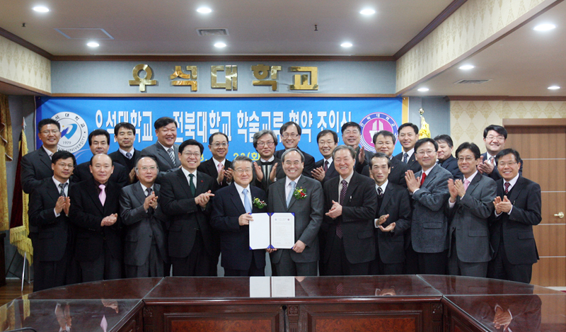 우리 대학과 우석대학교(총장 라종일)가 12월 23일 우석대 본관 회의실에서 양 대학 보직자들이 참석한 가운데 학술교류 협약을 체결했다.