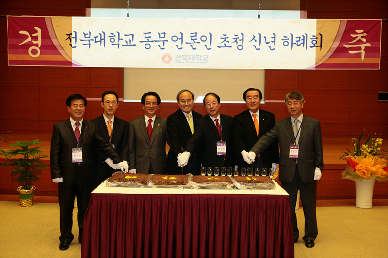 이날 신년 하례회에는 우리 대학 서거석 총장을 비롯한 보직 교수들과 신효균 동문 언론인회장(행정학 75학번, JTV 방송본부장) 등 도내 신문사와 방송사, 통신사에 종사하는 동문 언론인 100여명이 참석해 성황을 이뤘다.