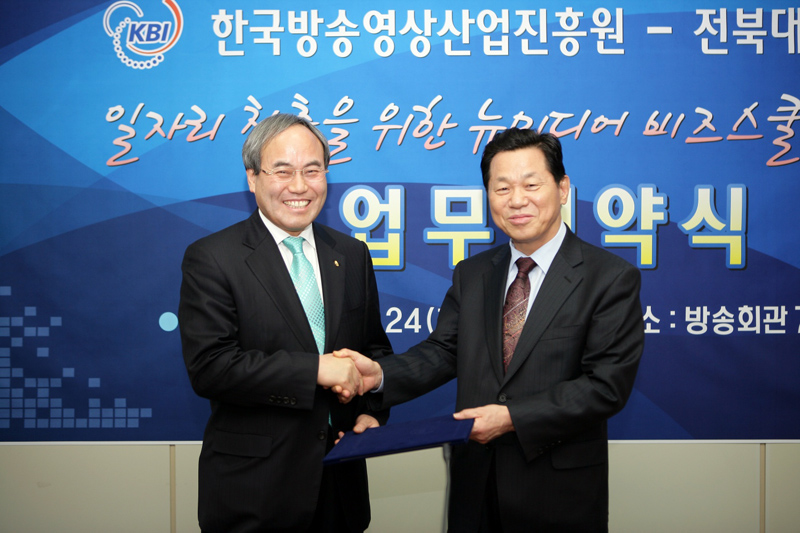 우리 대학은 한국방송영상산업진흥원(원장 박준영)과 24일 서울 목동 방송회관 7층 대회의실에서 뉴미디어 산업 분야 일자리 창출과 지역 핵심인력 양성을 위한 MOU를 체결하고, 뉴미디어 산업 발전을 위해 공동으로 노력하기로 합의했다.