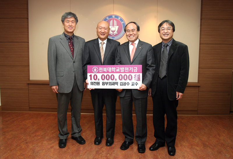 김 교수는 2월 25일 오후 3시 서거석 총장을 접견하고 대학 발전을 기원하며 발전기금 1천만원을 기탁했다.