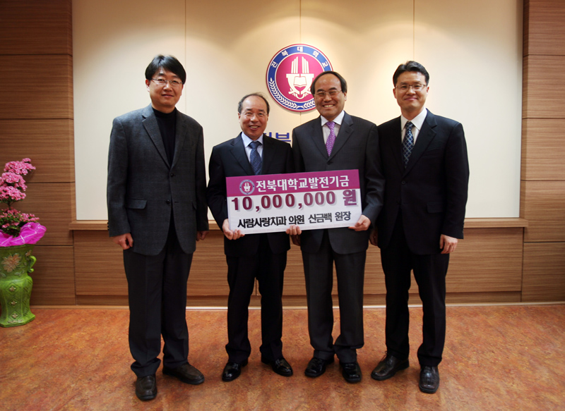 3월 12일 오전 대전의 교정전문치과인 한병주 치과의원 원장(치의학과 80학번ㆍ우리 대학 외래교수)이 대학발전기금 1억원을 쾌척했으며, 이에 앞선 11일에는 서울 사람사랑치과의원 신금백 대표 원장(우리 대학 명예교수)이 1천만원을 기탁했다.