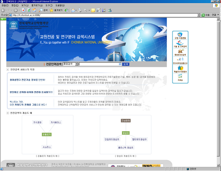 이 시스템은 우리 대학 교원전공 및 연구 분야를 손쉽게 검색할 수 있는 것으로 전국 최초로 온톨로지(ontologyㆍ연관 검색 방식)에 의한 연구정보 검색을 도입한 것이 특징.