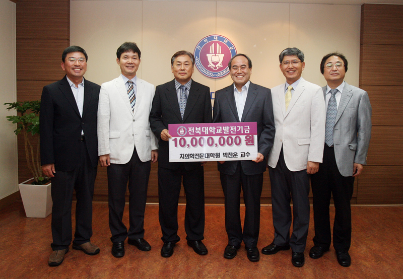 대학 발전과 후진 양성을 위해 평생을 교단에서 보내고 8월말로 정년을 맞이하는 치의학전문대학원 박찬운 교수가 대학과 후배 사랑의 마음을 담은 발전기금을 기탁해 훈훈함을 안겨주고 있다.