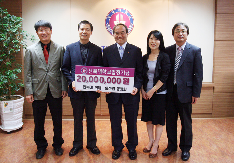 이날 오후 5시 조병춘 동창회장(조병춘 안과원장ㆍ의학과 80년 졸업)과 권삼현 부회장(의전원 이비인후과학 교수), 박숙경 의대 동창회 사무국장은 서거석 총장을 찾아 발전기금 기탁식을 가졌다.