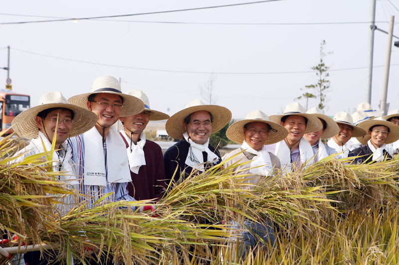 우리 대학이 생명의 원천인 쌀 생산과정 체험을 통해 농업의 중요성을 교육하고 풍년을 기원하기 위해 10월 26일 오후 3시부터 김제시 백구면 영상리에 위치한 농업생명과학대학 부속농장에서 벼베기 행사를 실시했다.