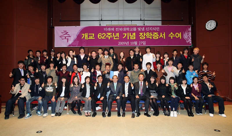 이번 개교 62주년 장학금은 학생 스스로의 역량 계발에 힘을 보태고 나아가 미래 국가와 지역발전을 선도할 우수 인력을 양성하는데 목적을 두고 신청을 받아 학생들의 주요 실적을 면밀히 평가한 뒤 지급 대상자를 선정한 것.