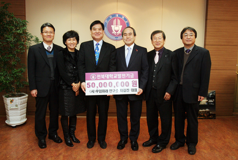 프로야구 히어로즈 구단주이자 (사)후암미래연구소 차길진 대표는 12월 21일 오전 11시 30분 전북대 서거석 총장을 찾아 5천만원 발전기금을 쾌척했다.