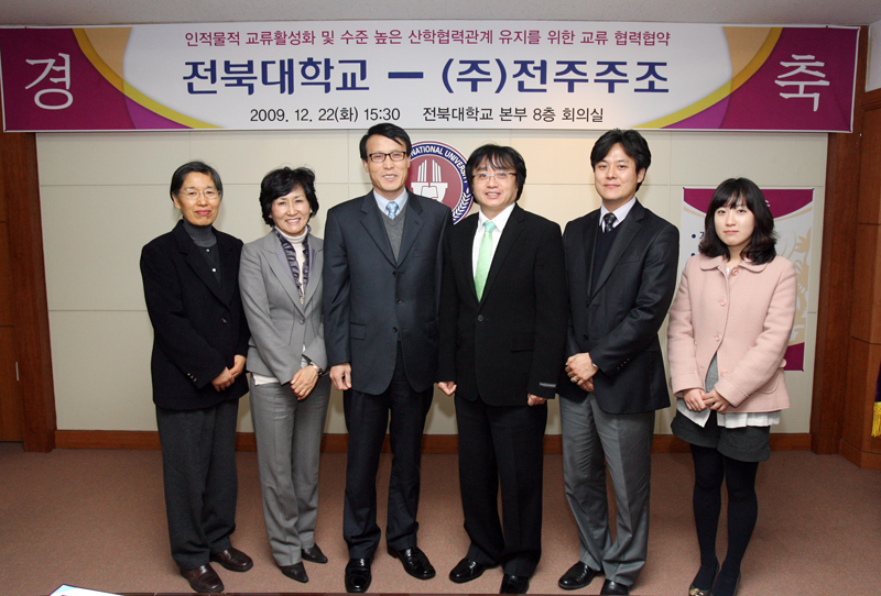 우리 대학은 12월 22일 오후 3시 30분 8층 회의실에서 (주)전주주조(대표 하수호)와 산학협력을 위한 협약을 체결하고, 연구와 식품산업 인재양성에 뜻을 같이 하기로 했다.