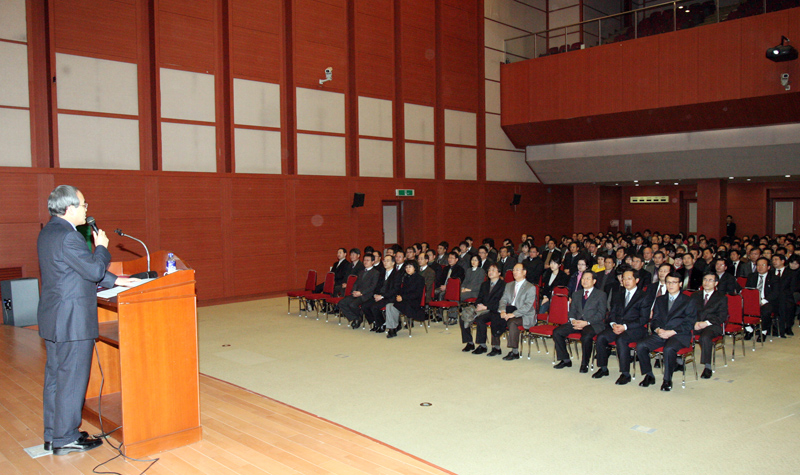 우리 대학이 1월 4일(월) 오전 11시 법학전문대학원 본관 가인홀에서 서거석 총장을 비롯해 본부 보직교수, 단대학장, 교직원 등 500여명이 참석한 가운데 시무식을 갖고 2010년을 힘차게 시작했다.