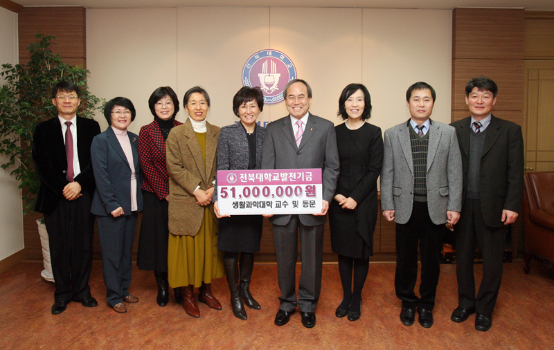 생활과학대학(학장 차연수) 교수 및 동문들이 2월 17일 오전 9시 30분 서거석 총장을 찾아 5천100만원의 발전기금을 기탁했다.
