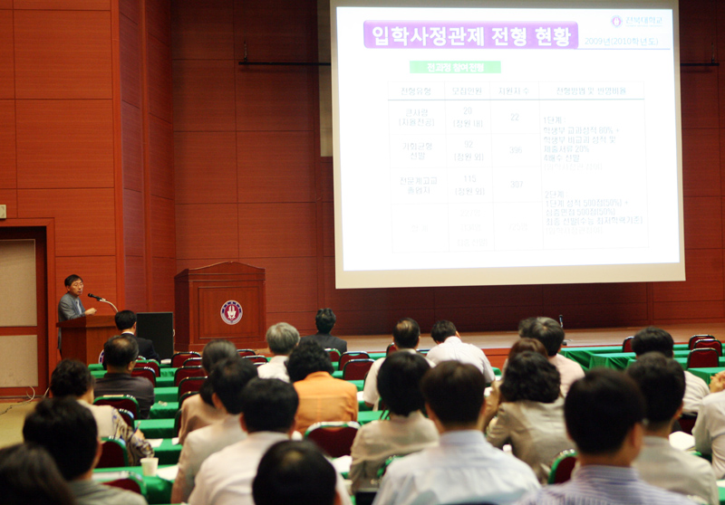 우리대학이 2011학년도 입학사정관제 전형에 대비하고, 심층면접의 효율성 증대 및 신뢰성과 타당성 제고를 위해 6월 15일 법학전문대학원 가인홀에서 교수위촉사정관들과 단과대학 입시업무 담당자 및 조교들을 대상으로 워크숍을 개최했다.