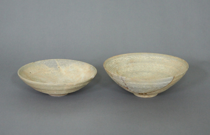 이번에 기증된 분청사기는 일부가 파손되어 결실된 부분이 있지만 인화문(印花文)이 그릇 전체에 시문되어 있는 대접(大楪)이다. 이러한 인화분청(印花粉靑)은 도장으로 그릇 표면에 문양을 찍어 장식하게 되는데 국화문이 가장 많고 나비, 원, 점, 돗자리 문양 등이 있다. 인화분청은 왕실용(王室用)과 관청용(官廳用)으로 많이 제작되었으며, 굽 안쪽이나 그릇 안 바닥에 관청, 생산지, 장인 등의 글씨가 새겨지는 예가 많다. 기증된 유물에는 글씨가 없다. 다른 한 점의 도자기는 문양이 없이 내외면에 백토만 입혀진 대접이다.