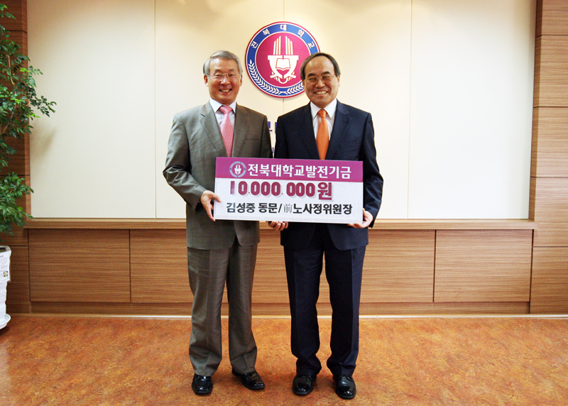 김 전 위원장은 지난 10월 1일 오후 대학을 방문, 서거석 총장을 접견한 자리에서 기탁식을 갖고 모교의 경쟁력 향상을 위해 써달라며 발전기금을 기탁했다.