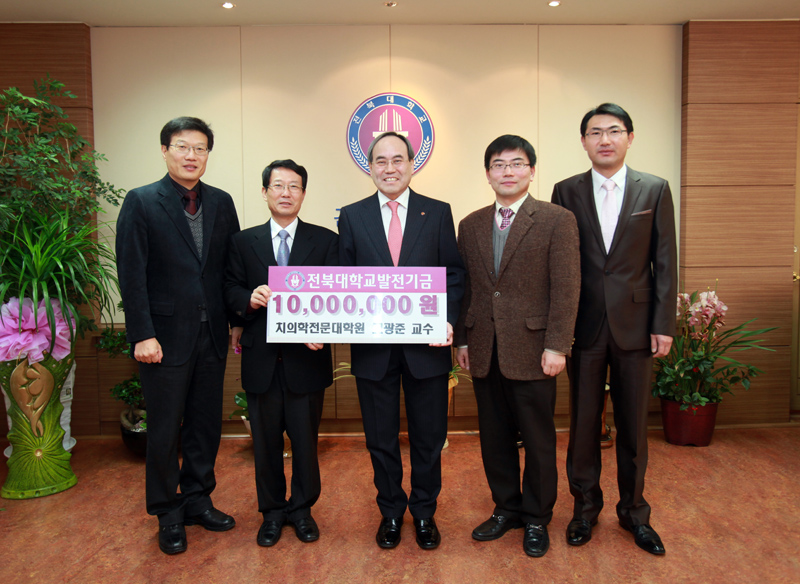 고 교수는 1월 17일 오전 11시 김정기 치의학전문대학원장과 함께 서거석 총장을 접견하고, 모교와 치의학전문대학원의 발전을 위해 써달라며 1천만원을 전달했다.