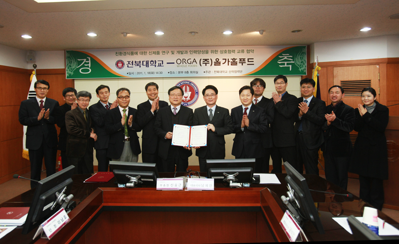 우리대학이 1월 18일 오후 2시 30분 친환경 식품 전문기업인 (주)올가홀푸드(대표이사 남제안)와 협약을 체결하고, 친환경 식품에 대한 연구와 우수인재양성에 나섰다.