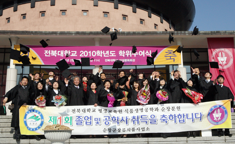 우리대학 순창분원은 지난 2007년 우리 평생교육원과 순창군이 연계해 개설한 평생교육 과정으로, 지역 주민들을 대상으로 학점은행제를 통해 전북대가 학사학위 취득과정을 운영했고, 이번에 그 첫 졸업생들이 배출된 것이다.