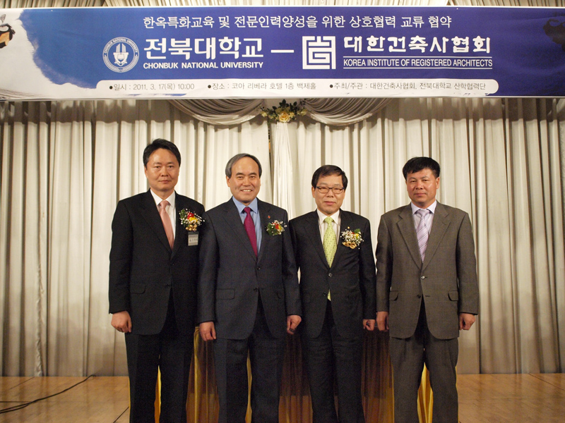 서거석 총장은 “우리대학은 전통문화를 잘 간직하고 있는 전북의 거점대학으로 가장 한국적인 캠퍼스 조성을 위해 노력하고 있다”며 “대한건축사협회와의 이번 협약을 통해 한옥 관련 특화 교육과 우수인재 양성에 더욱 힘쓰겠다”고 말했다.