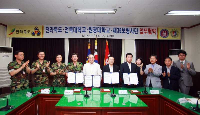 우리대학은 7월 4일 오전 11시 30분 서거석 총장을 비롯해 김완주 도지사, 안병태 35사단장, 김대곤 원광대 부총장 등이 참석한 가운데 35사단 및 전북도 등과 장병들의 학습 지원을 위한 '관·학·군 학습지원 협약'을 체결했다.
