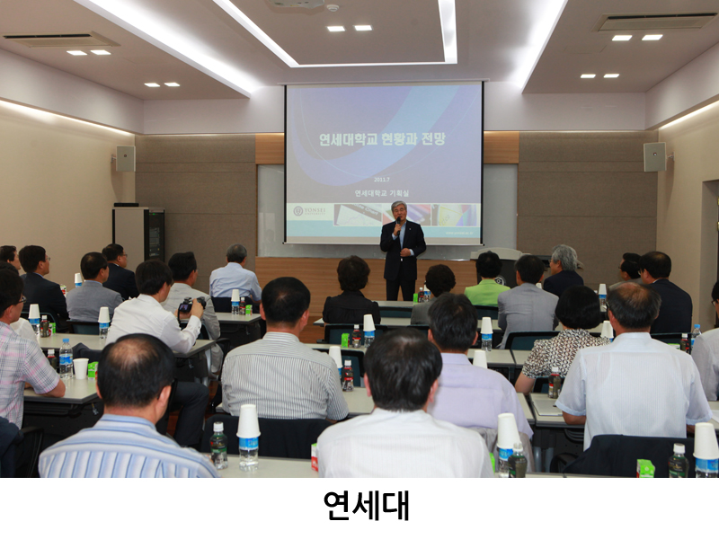 이어 오후에는 연세대를 방문해 김한중 총장 및 주요 보직자들로부터 주요 현황 및 그간의 성과에 대한 발표를 듣고 의견을 나누었다.