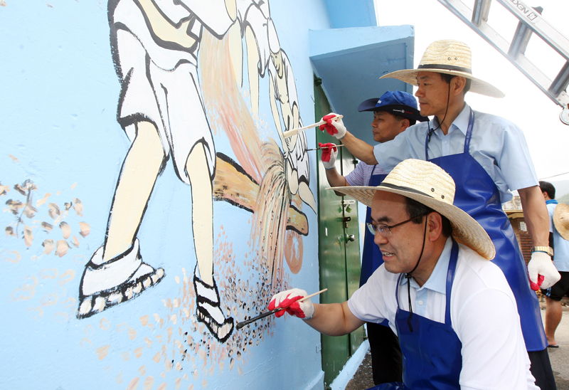 이날 서 총장은 학생들과 함께 마을의 환경정화를 위해 벽화 그리기에 함께 참여하는 등 봉사의 손길을 함께 나눴고, 봉사활동 참여 학생 및 마을 주민들과 격의 없는 시간도 가졌다.