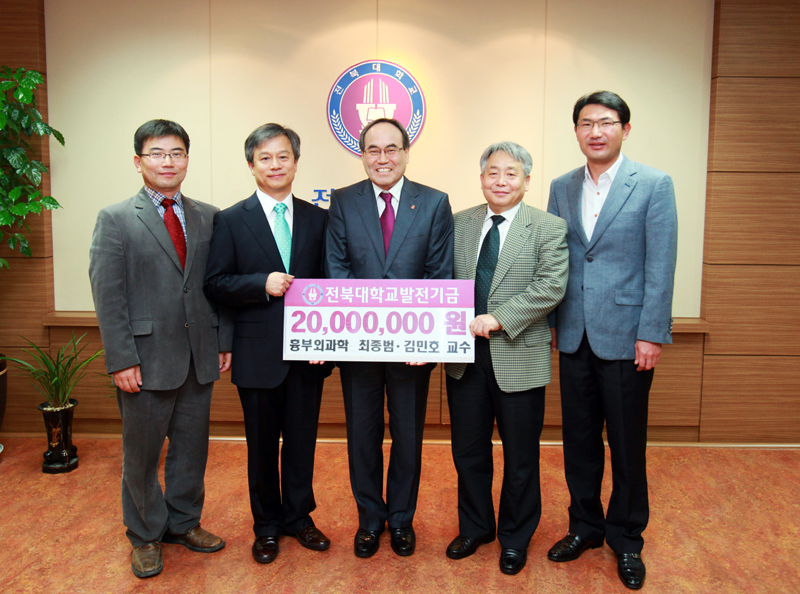 ‘사랑의 의사’ 최종범·김민호 교수가 이번에는 모교와 후배들을 위해 써달라며 대학이 2천만 원을 일시에 기부해 훈훈함을 더하고 있다. 지난 2008년 의대 1인 1구좌 장학금을 시작 4년 째 기부활동을 해오면서도 또 한 번 후배와 모교를 향해 따뜻한 사랑을 베푼 것이다.