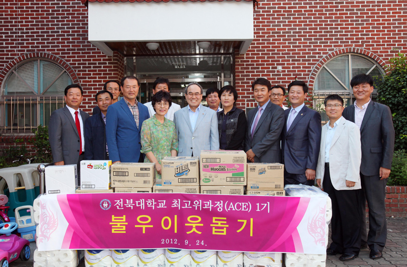 최고위과정은 추석을 앞둔 9월 24일 서거석 총장과 최백렬 주임교수, 안춘엽 회장 및 회장단 등과 함께 전주영아원과 평안의 집, 은혜를 입은 천사의 집 등을 방문해 소외 이웃들을 돌아보는 시간을 가졌다.
