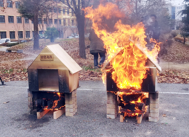 박희준 교수(주거환경학과)가 개발하고, 학교기업 에코하우징이 생산하는 방염 목재는 기존의 방염 도료를 목재 표면에 도장하는 방식이 아니라 진공상태에서 고압으로 방염 도료를 목재에 주입하는 방식으로 만들어진 것.